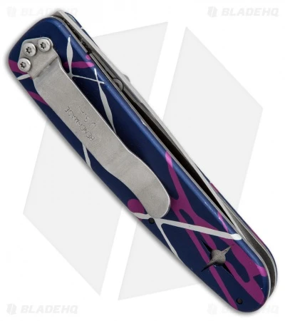 Benchmade’s 855-01 offers a solid folder design with a uniquely collectible handle. The ATS34 stainless steel blade deploys smoothly with a thumb stud and locks in place with a reliable liner lock mechanism. The aluminum handle has an impressive purple and blue “Color Trails” finish with star reliefs on either side. Includes a stainless steel pocket clip for convenient EDC.